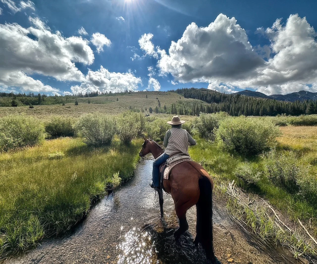 In 2024, we bought another Spur Brand horse, “Ace,” also a 5-year-old. This was an unexpected purchase—we had planned to just come and visit—but Brett had his eye on him. He has been exactly what we apparently needed: very willing, kind, and mostly laid back. This past fall we put our 12-year-old grandson, who is just learning to ride, on him and he did great.