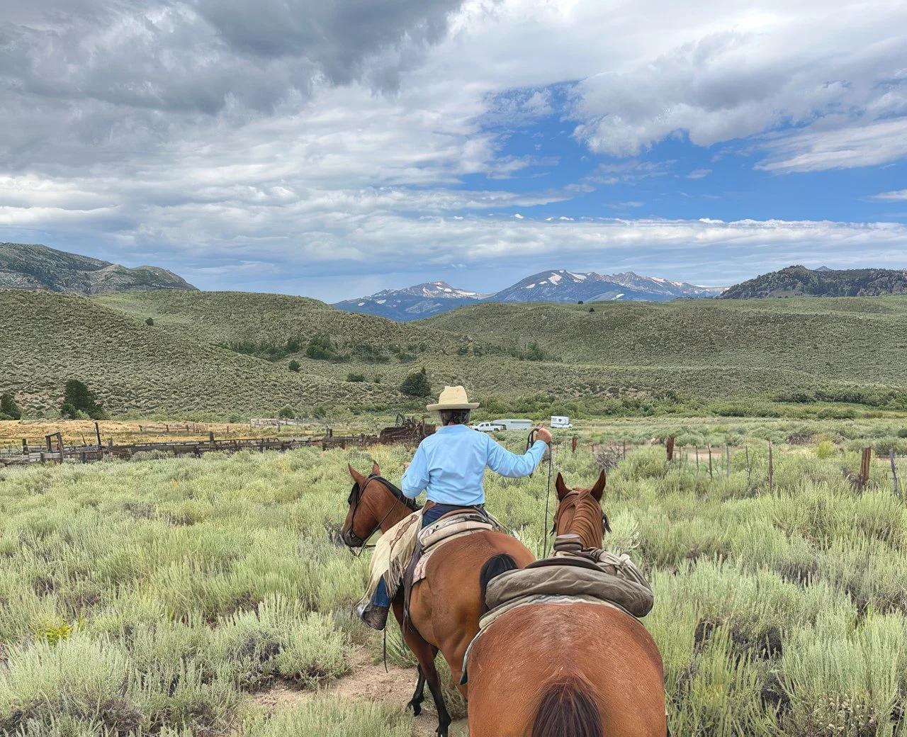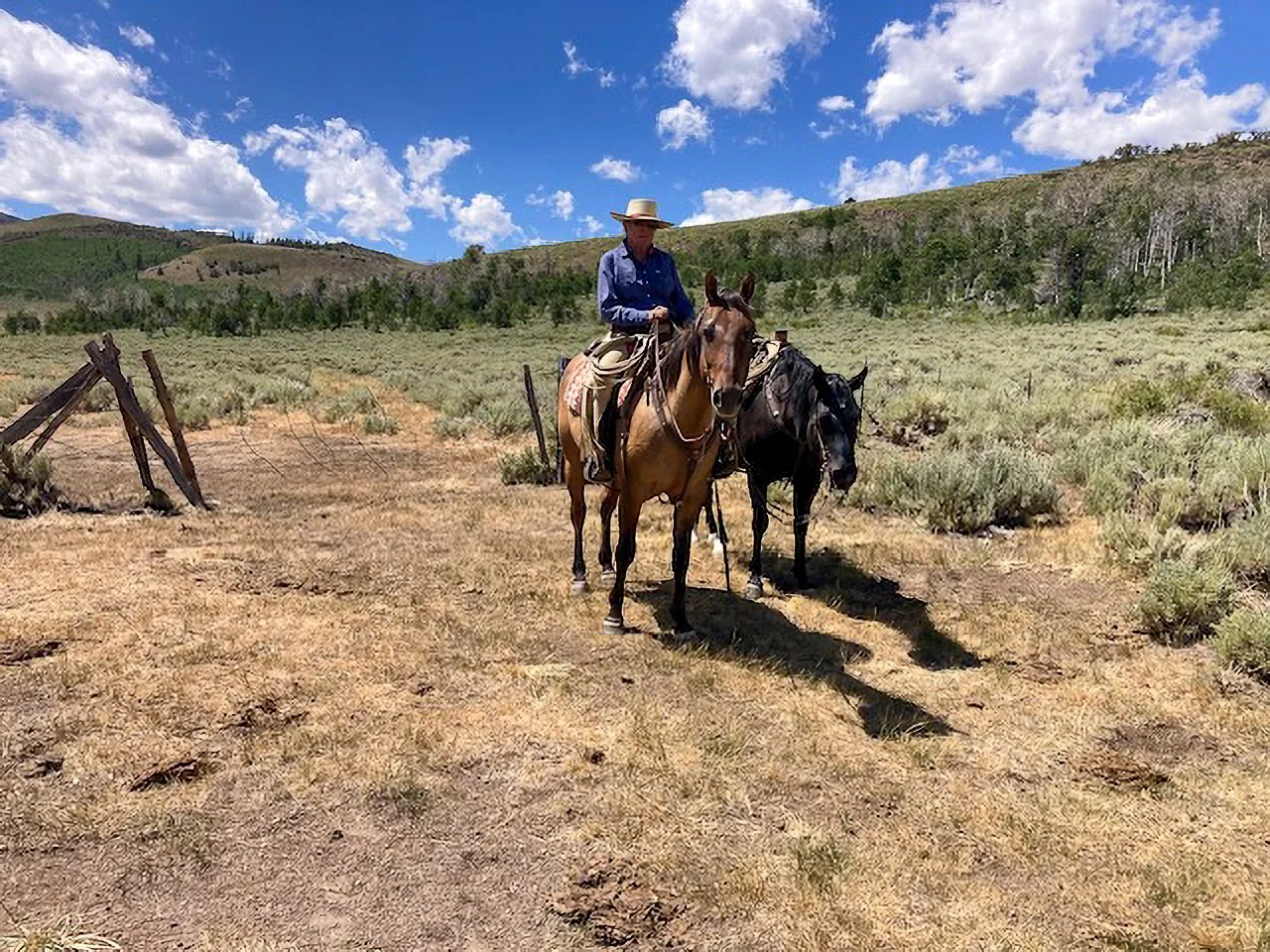 We have been coming to the Ranchers Horse Sale for about 5–6 years. In 2023, we bought a Spur Brand horse, “Bob,” a 5-year-old. Britt Bentz was riding him and I felt he was the horse for me. He reminded me of a big bay gelding my father used to ride—quiet and solid. We have been very happy with him, with the exception of his 6-year-old year when he felt a bit full of himself—not unexpected as they grow up. All is well now.