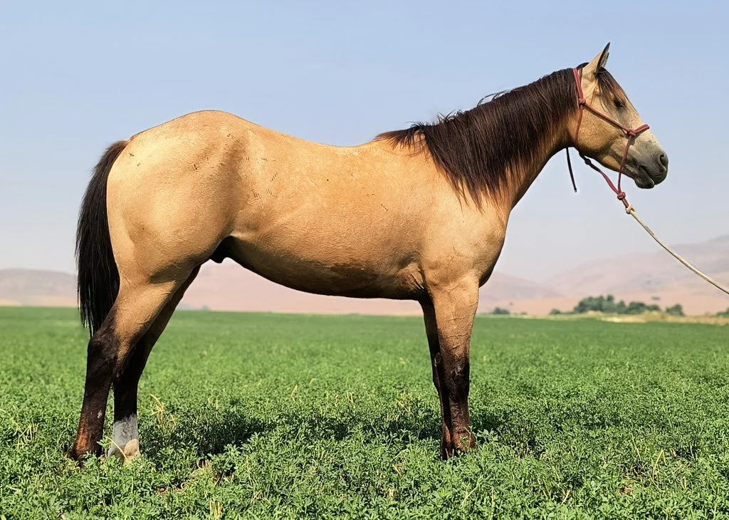“Sesame” is a very talented & fun buckskin, we raised him & have been using him on the ranch the last few years. Our daughter claimed him & has used him in the branding pen roping many claves. We have team roped on him, gathered in rough mtn terrain. Has a fun personality & is very trainable. Very athletic and can act a little watchy on the ground but once you know him you love him.