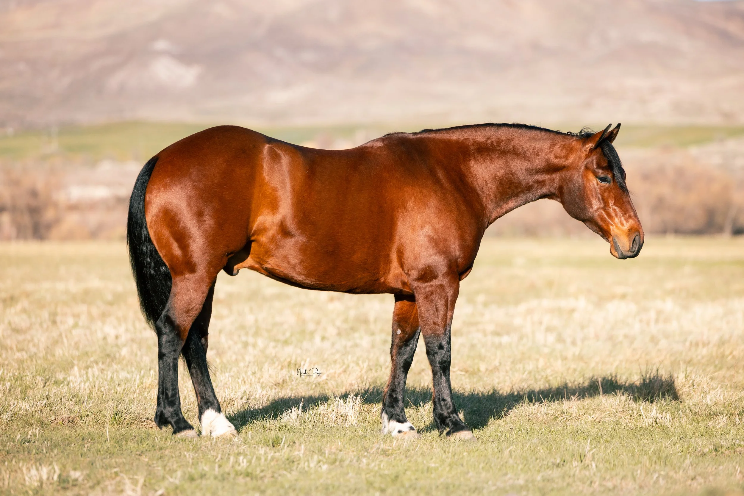 We have had “Nigel” since he was a yearling and he has been a wise old soul since the beginning. He’s the same horse everyday and takes new situations like an old campaigner. Lay him off, cinch him up and go do any job, he effortlessly adjusts to the situation and rider. “Nigel” is very cowy and has been roped on a lot in town at ranch rodeos and on the ranch. My husband rides him in town and on the ranch and he is one of my go-to branding horses. He is patient and remains unphased when I’m back and forth riding and taking care of our kids. “Nigel isn’t just an asset to our livelihood; he is a true team player for whoever is riding him.